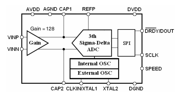 ● 外部輸入參考電壓VREFP范圍為:0.1v – AVDD(可直接接到電源,簡化應用系統)