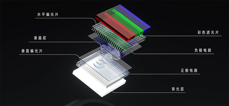 簡而言之,屏幕的基本原理是將液晶材料填充在兩塊平行板之間,然后通過電壓改變液晶材料中分子的排列,從而達到遮光透光的目的,以顯示不同深淺和隨機排列的圖像。此外,只要在兩個板之間添加三值濾色器層,就可以顯示彩色圖像。